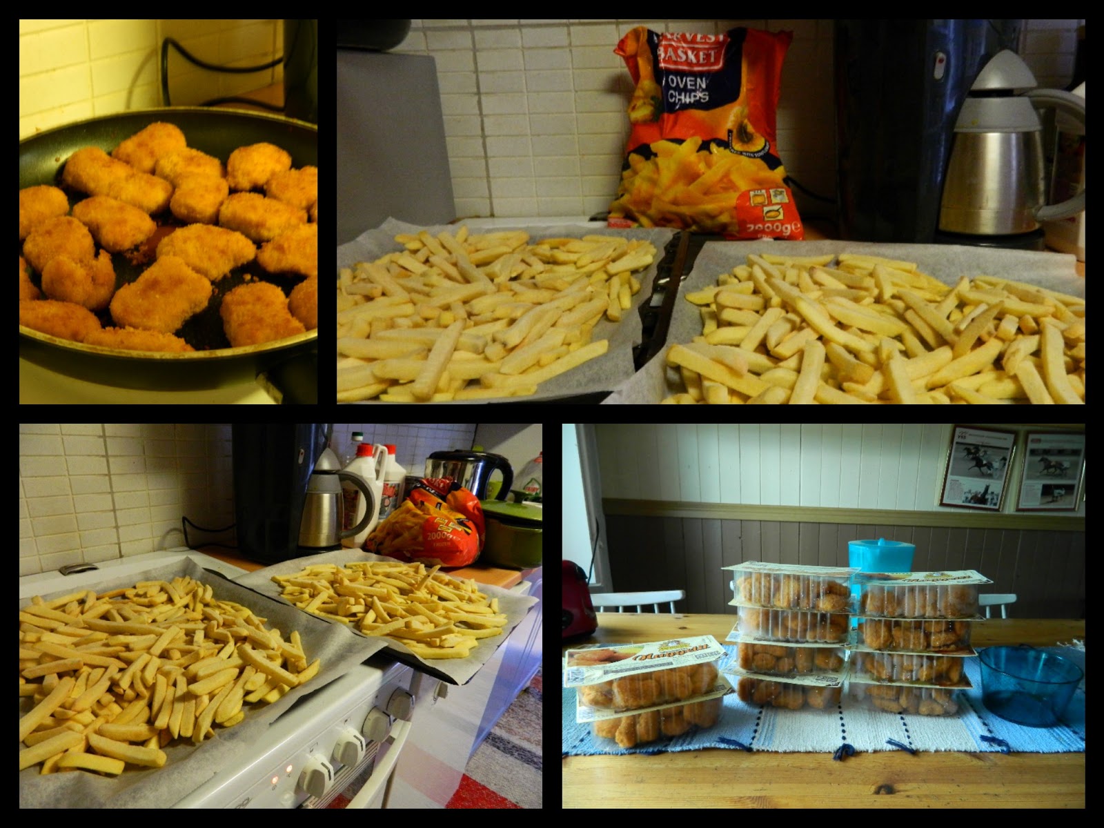 Tänään olin tosiaan keittiöhommissa. Laitettiin Helin ja Rimin kanssa aamupala, lounas ja päivällinen. Lounaaks oli nugetteja ja ranskalaisia. Meni niitä nugeja 6 pakettia ja ranuja 3 kiloo. Päivälliseks oli sitte kanarisottoa.